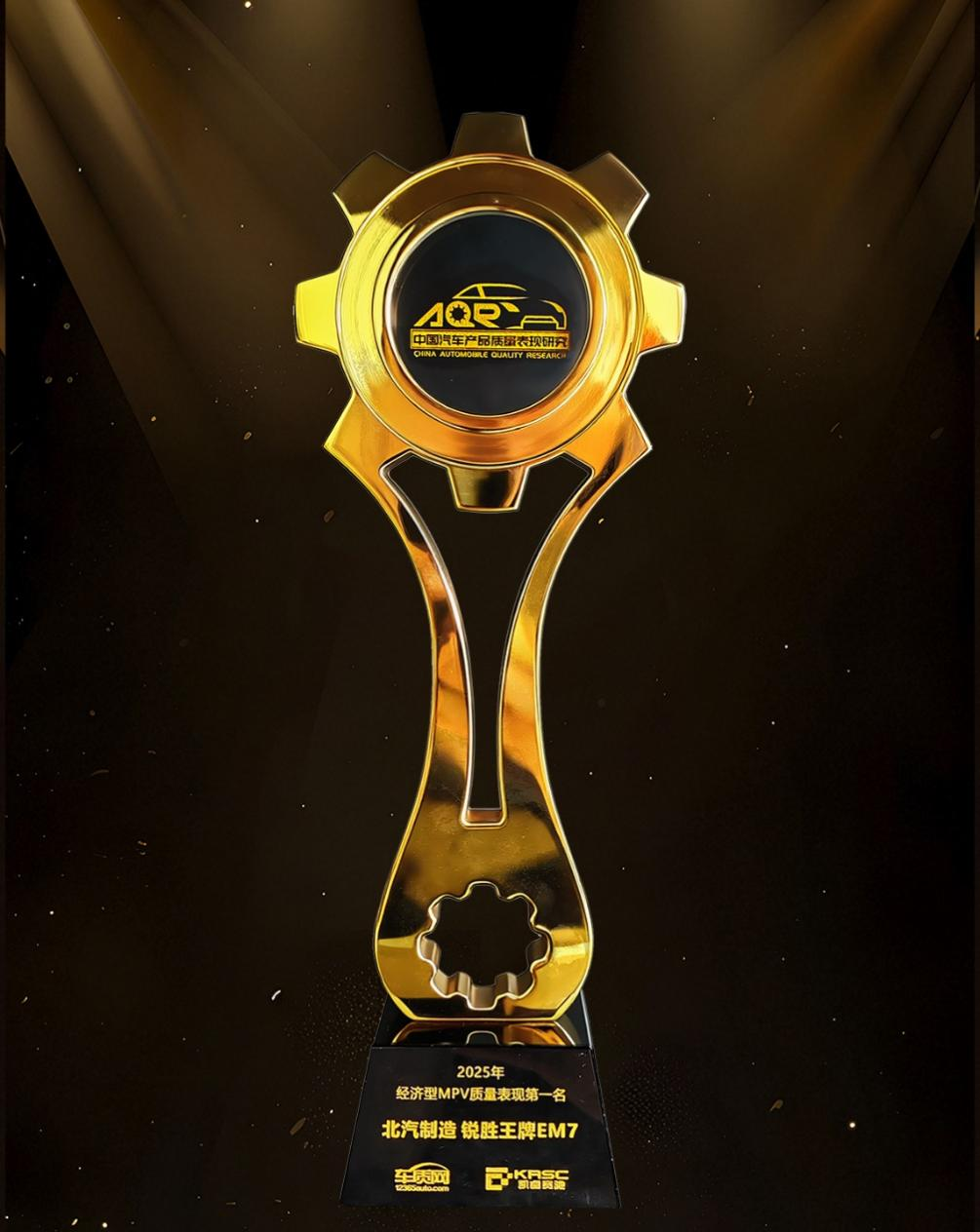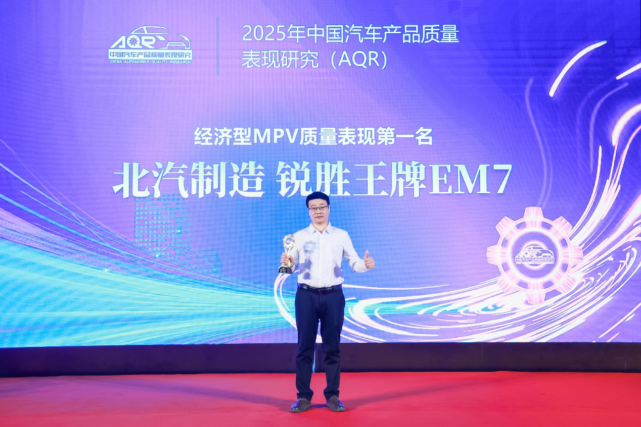 鲁网10月8日讯9月25日,在车质网与凯睿赛驰咨询联合主办的“2025年中国汽车产品质量表现研究(AQR)结果发布暨颁奖典礼”上,北汽制造锐胜王牌E-M7凭借出色的产品质量和用户口碑,一举夺得2025年经济型MPV质量表现第一名的桂冠。这一荣誉不仅是对北汽制造产品品质的认可,更是对其始终坚持“质量本位”理念的最好印证。